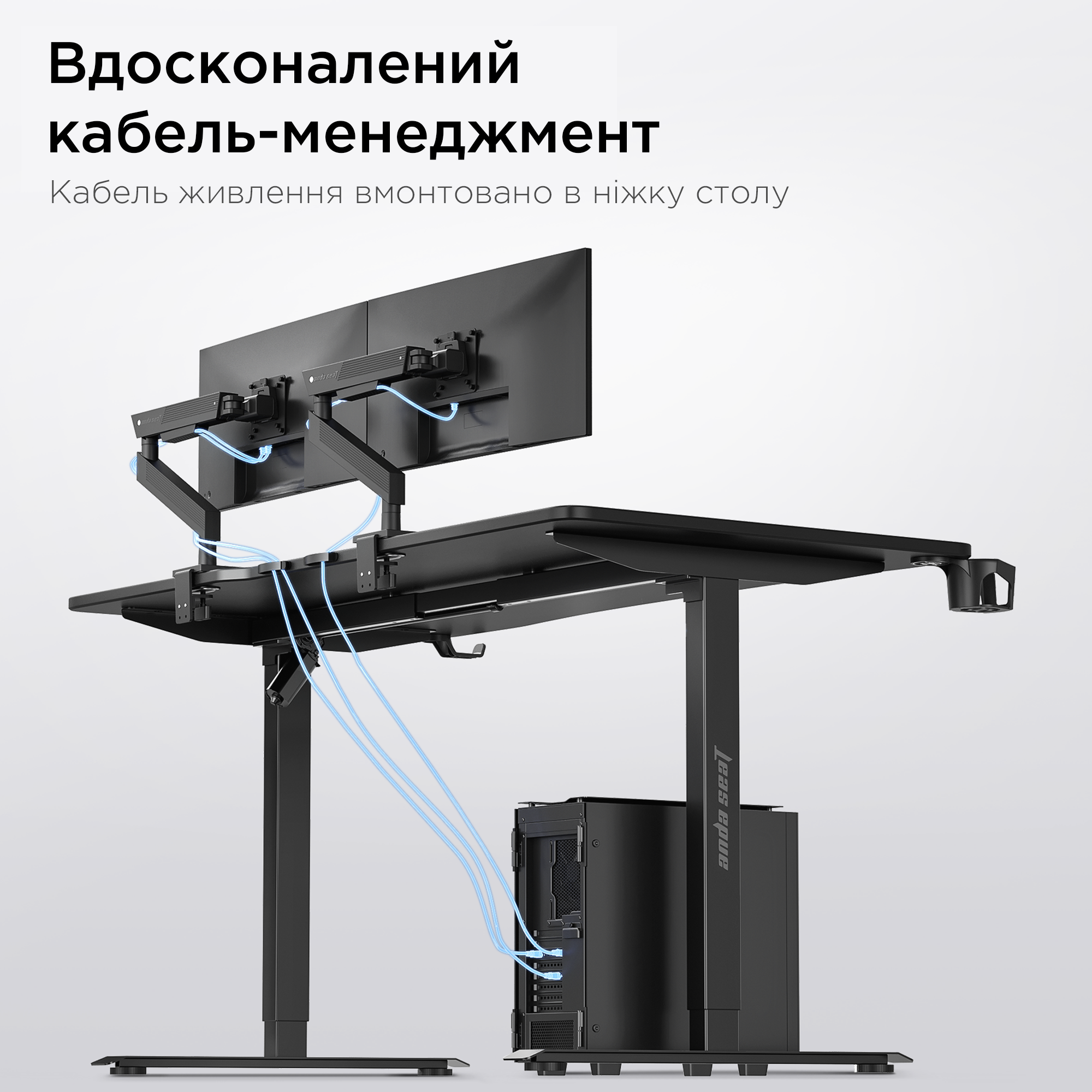 Успішне створення кожного робочого місця починається з правильної основи - Комп'ютерний стіл Anda Seat Xtreme E. Його ергономіка та функціональність мають беззаперечний вплив на ваш комфорт та продуктивність під час роботи та гри.